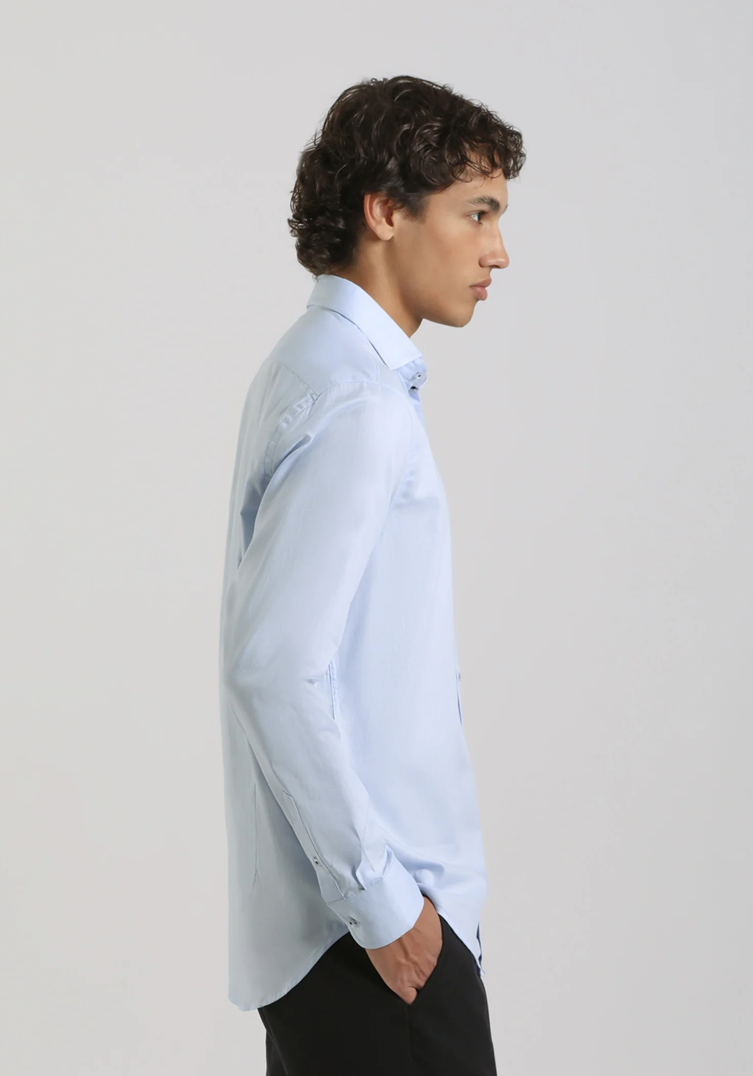 ALTEZZA MODELLO 185cm - TAGLIA L Camicia manica lunga tinta unita in cotone con tessuto strutturato.